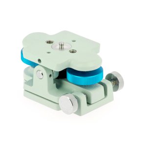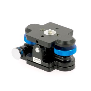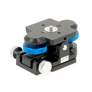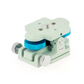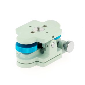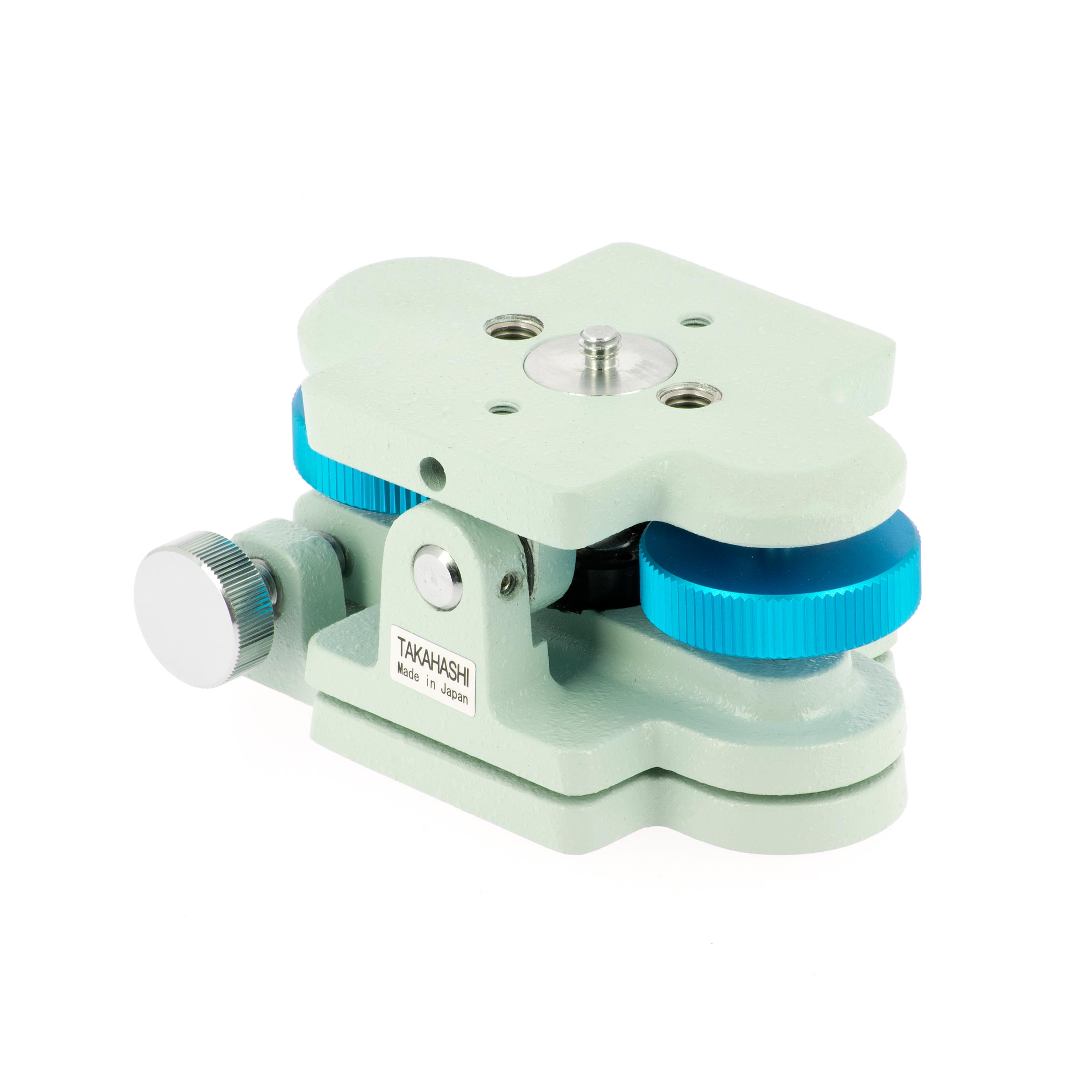 The Takahashi AZ Guidescope Mount has 2 fine movements with double knobs, one for azimuth adjustment, the other for tilt adjustment. The gearing is large and the movements are smooth, making pointing very accurate. The range of movement is 10° in azimuth and 5° in height.