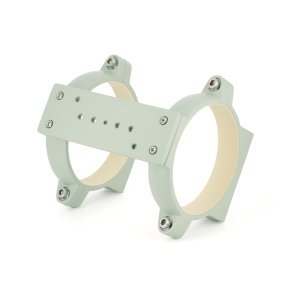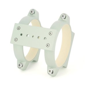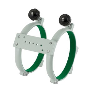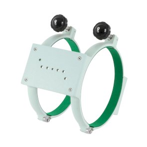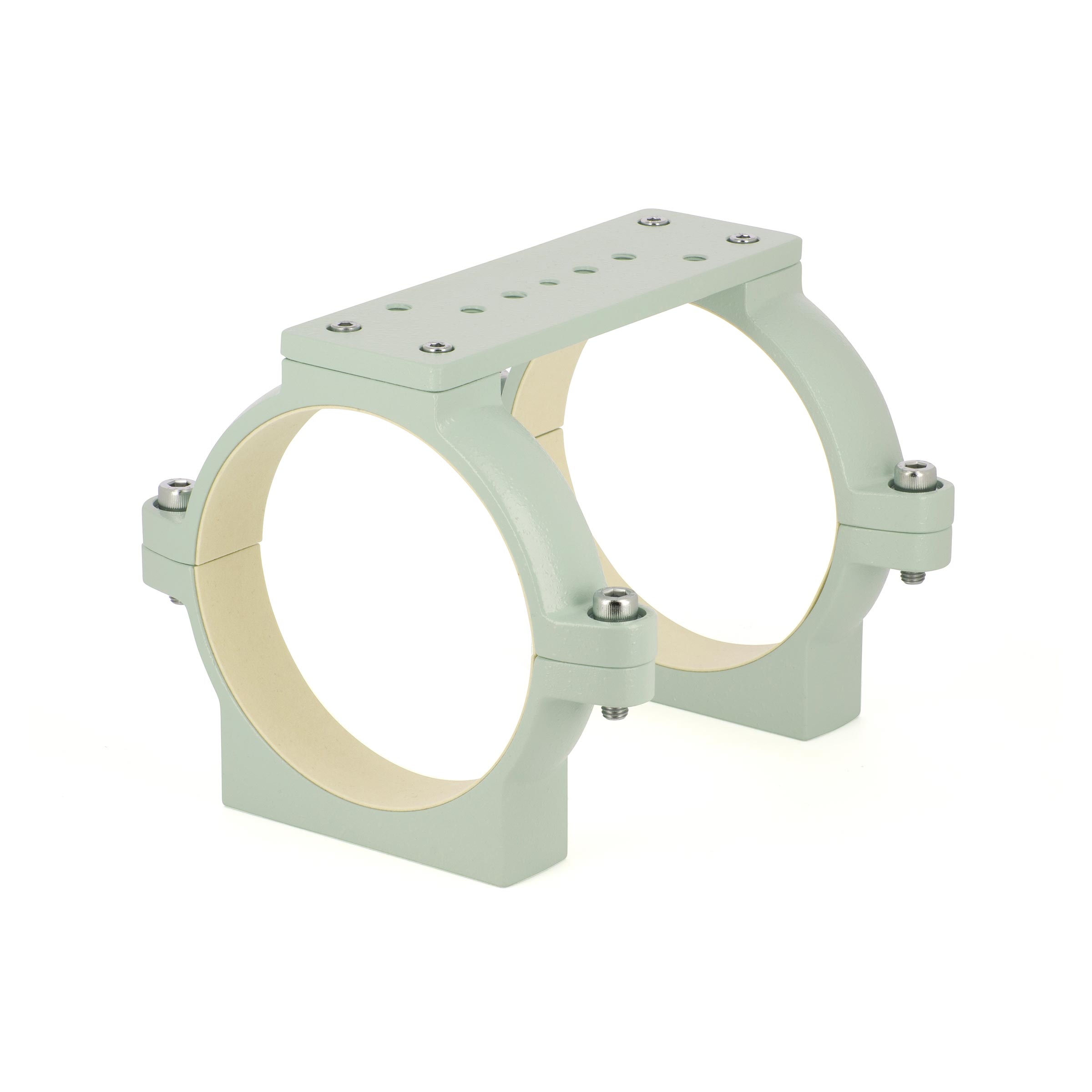 Tube rings allow optical tubes and accessories to be mounted parallel to the main instrument. They consist of a pair of rings and a top plate, the length of which varies according to the optical tube. Drillings and threads are made in the top plate for the attachment of accessories.