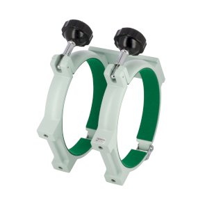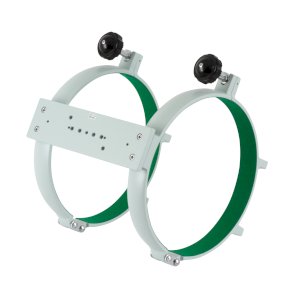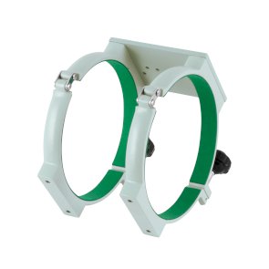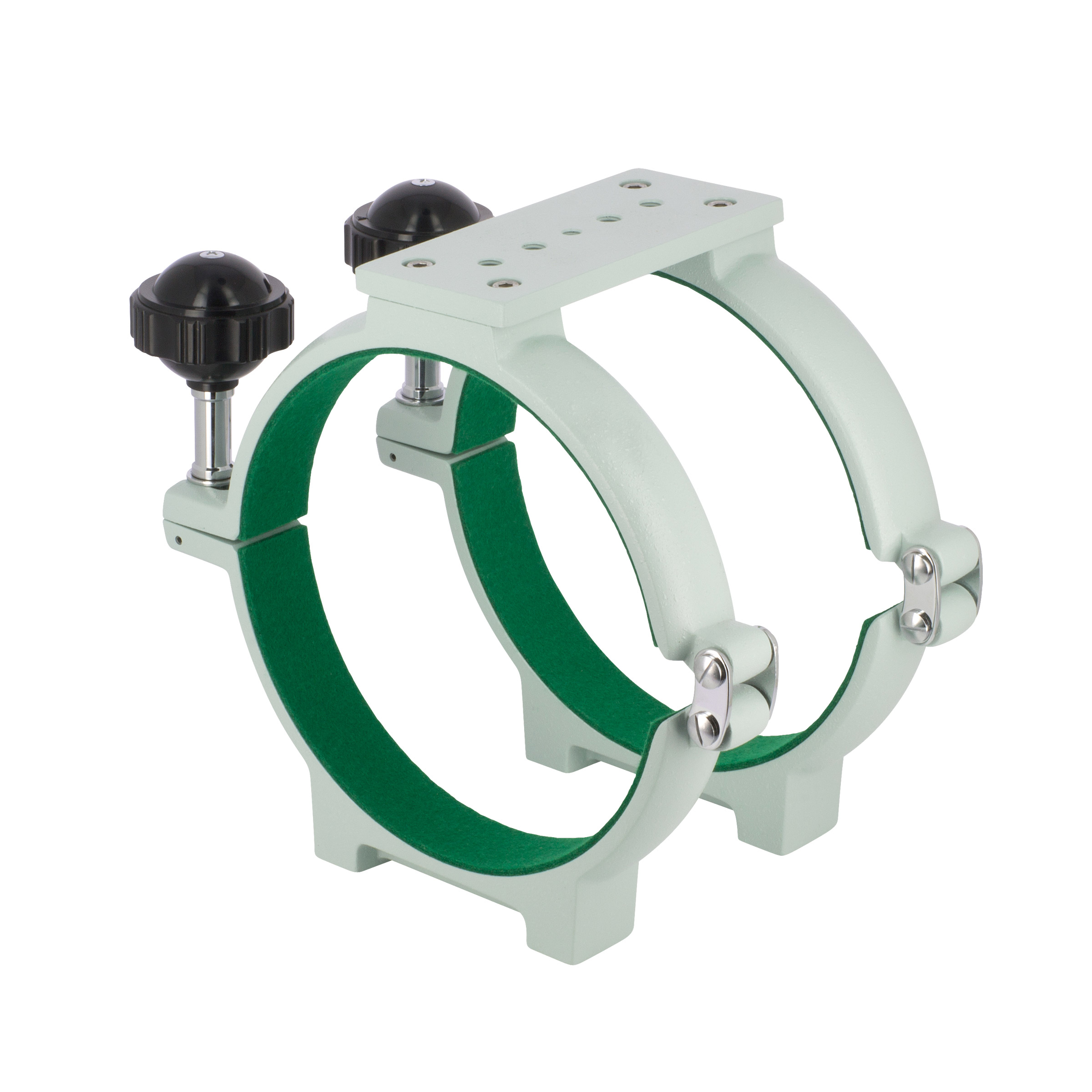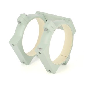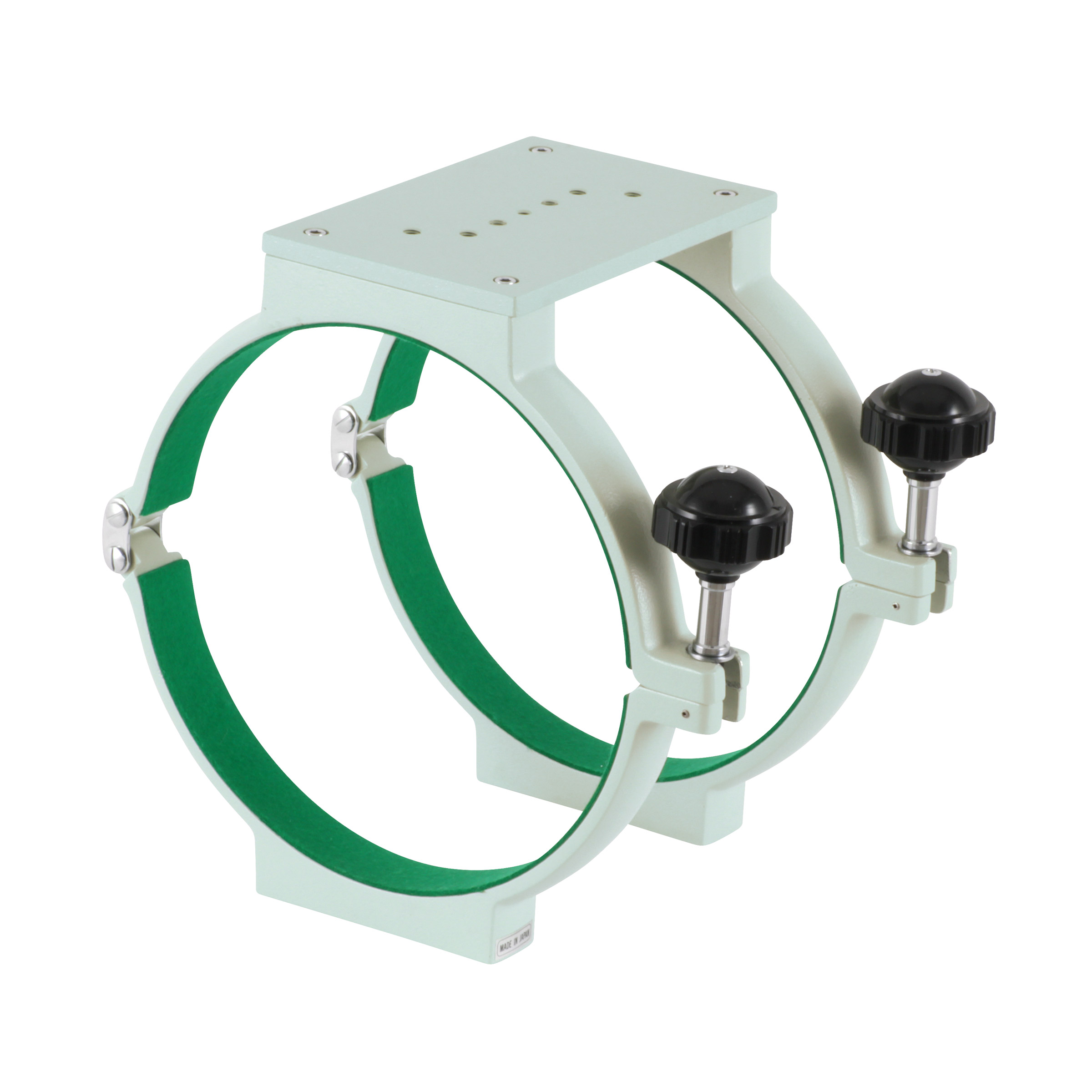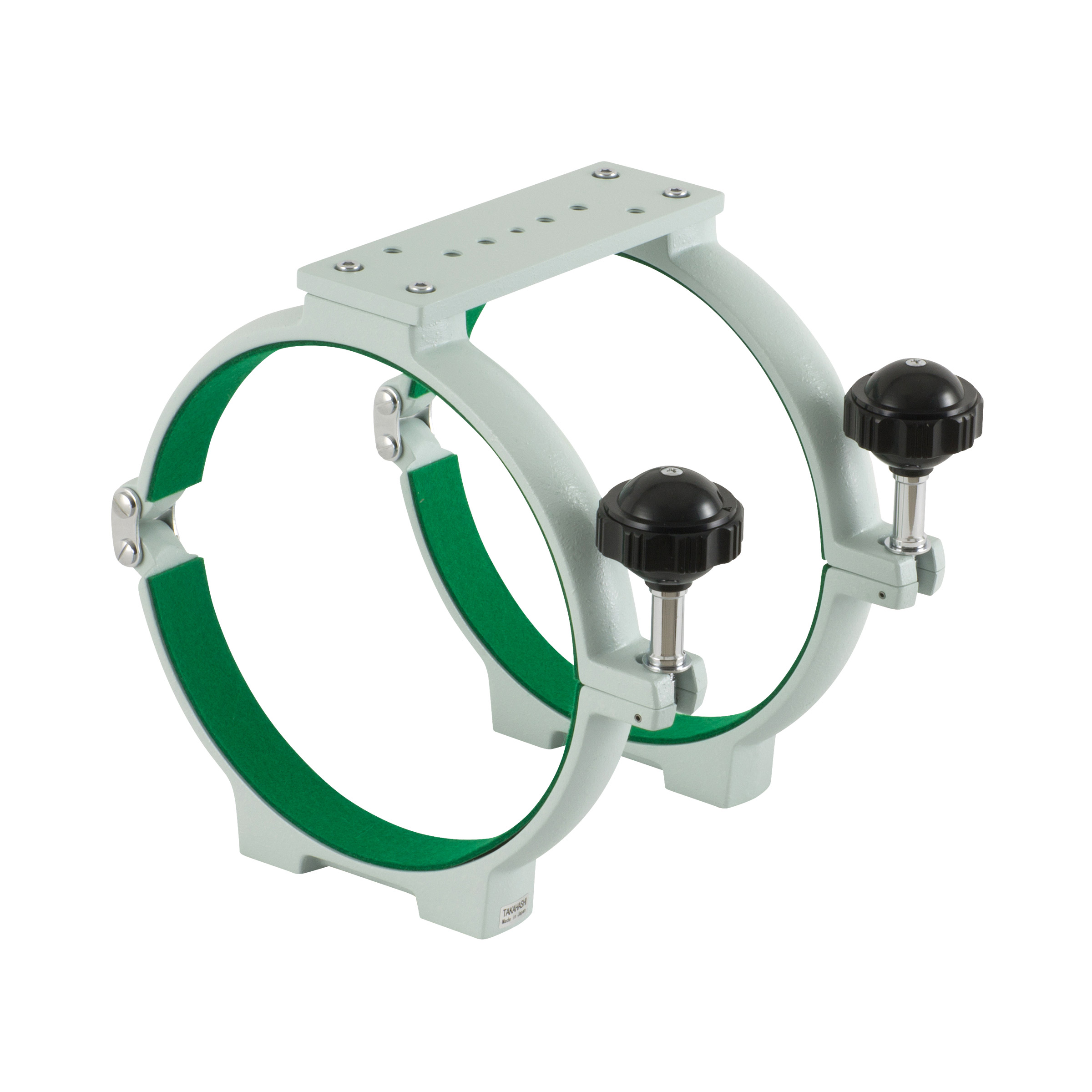 Tube rings are delivered without bottom plate and without dovetail. Their fit will depend on the brand and kind of the mount used. Takahashi offers plates for mounting on its own mounts; we indicate the item numbers of these plates in the features table. However, it is possible to mount the tube rings on any other plate or dovetail with compatible holes and centre distances.
