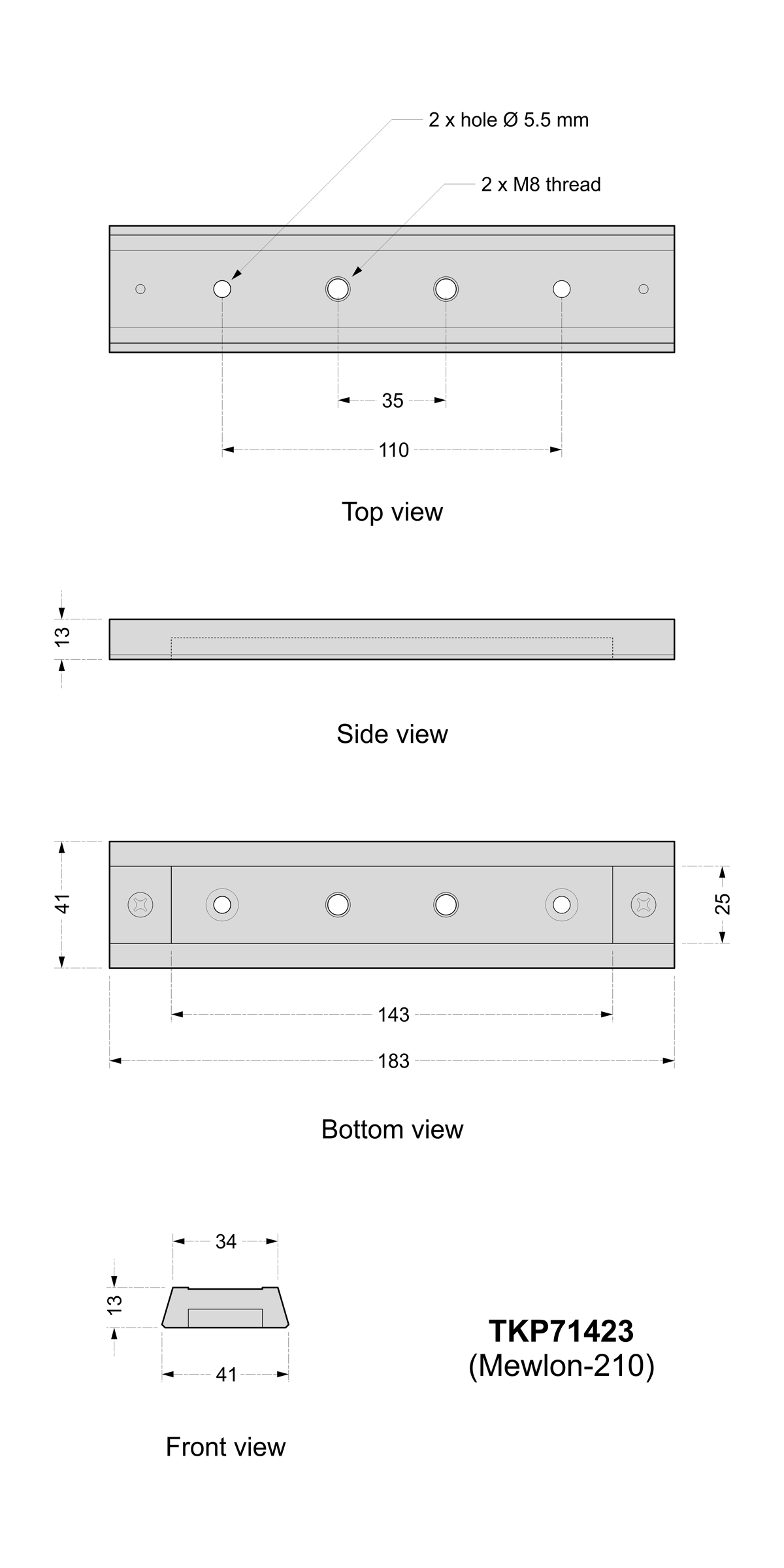 Diagram of Takahashi Mewlon-210 dovetail bar