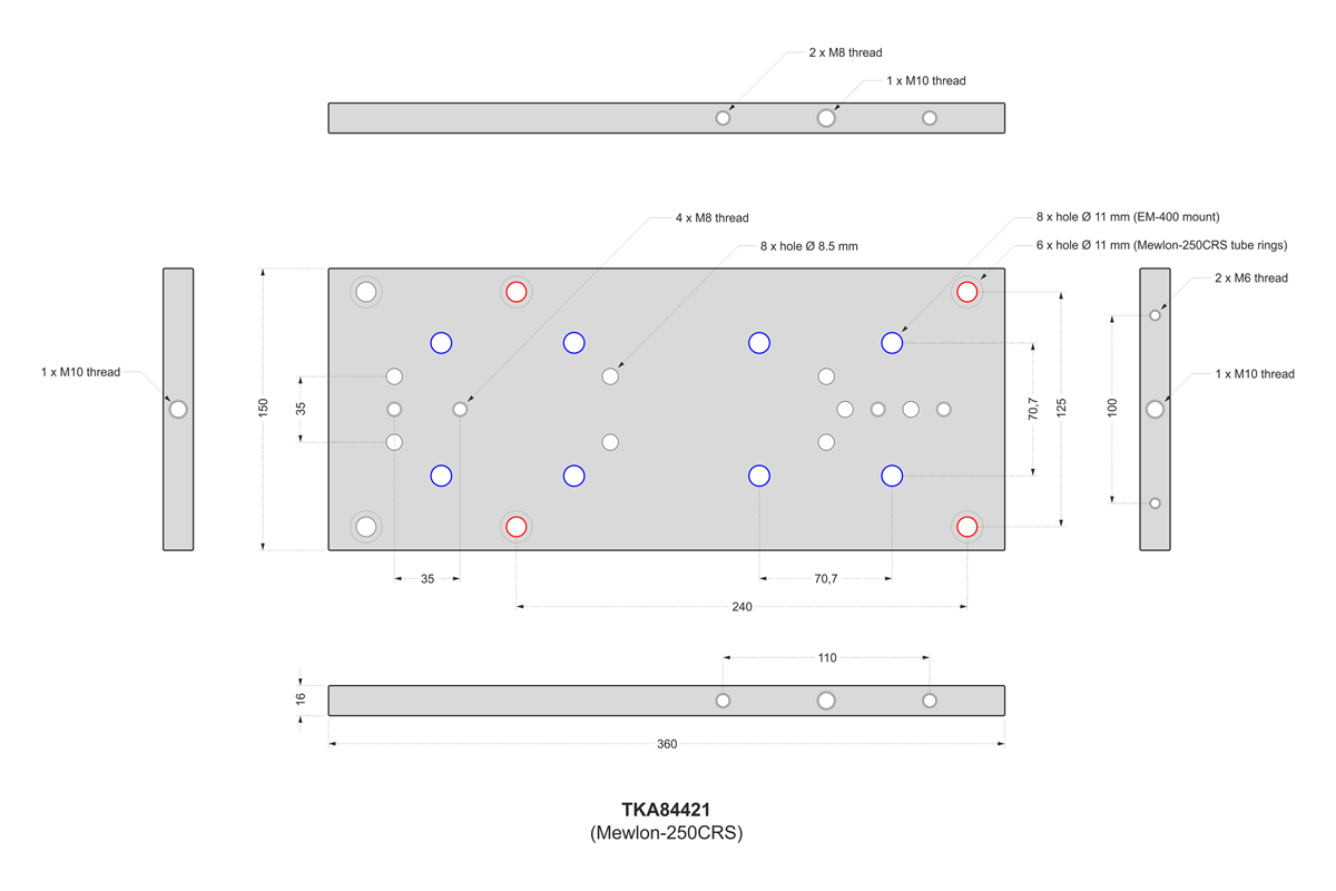 The CW plate is intended for the installation of the Mewlon-250 telescope on the Takahashi EM-400, EM-500, JP-Z and NJP mounts.