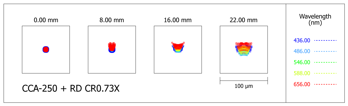 Spot-diagram of the Takahashi CCA-250 reflector with reducer RD CR0.73X