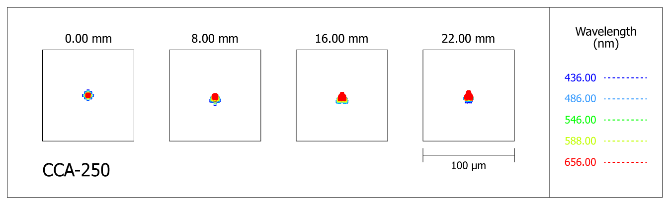 Spot-diagram of the Takahashi CCA-250 reflector with reducer 645RD CA0.72X