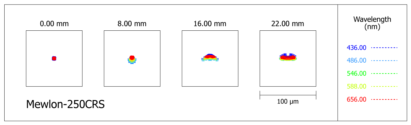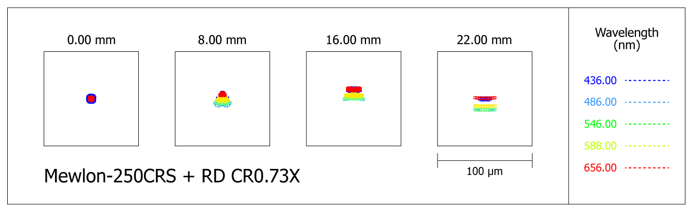 Spot-diagram of Takahashi Mewlon-250CRS reflector with RD CR0.73X focal reducer