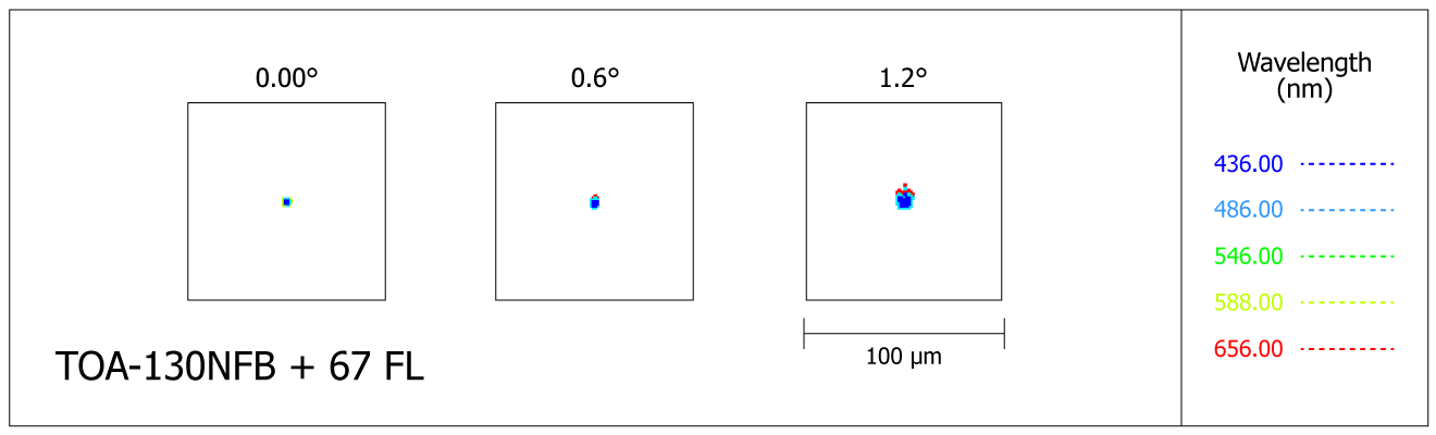 Spot-diagram of Takahashi TOA-130 refractor with 67FL field corrector