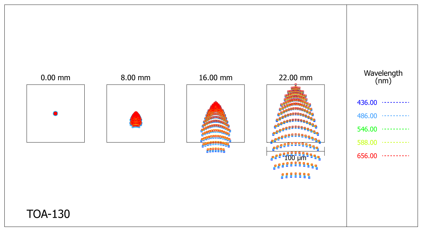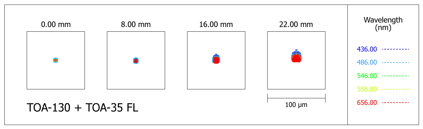 Spot-diagram of Takahashi TOA-130 refractor with TOA-35FL field corrector
