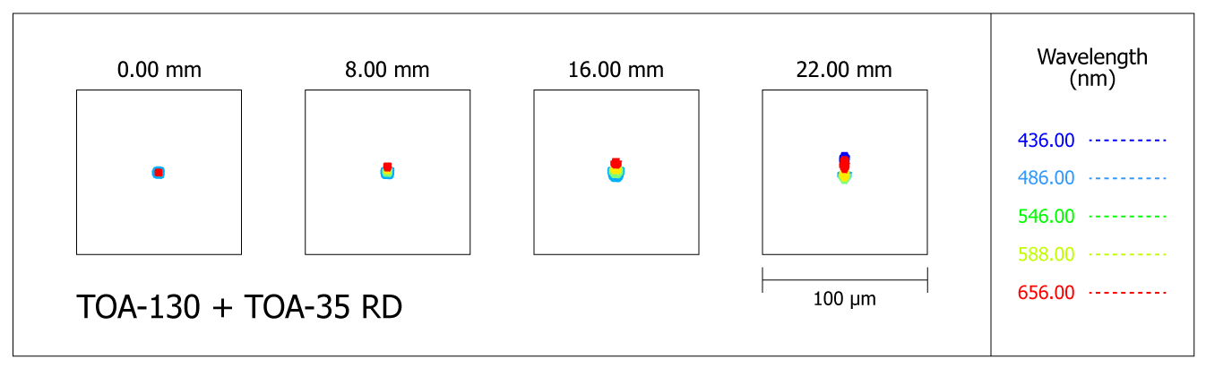 Spot-diagram of Takahashi TOA-130 refractor with TOA-35RD focal reducer
